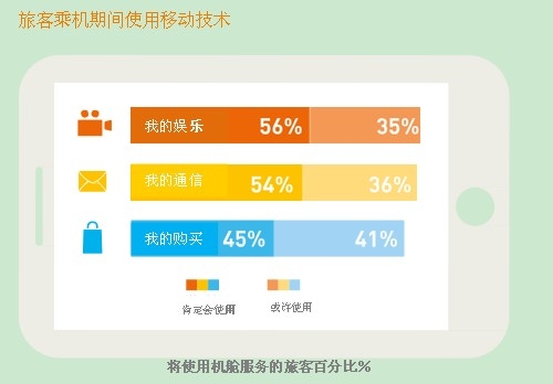 此趨勢可使航空公司有機會持續在整個航程中吸引旅客,大部分旅客(45%)將使用其自己的設備來購買食品和飲料,流覽網上免稅商店和獲取促銷資訊。