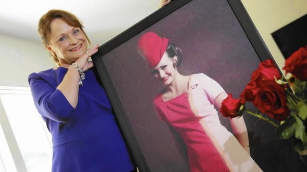 圖1:戴安娜·漢森手扶其作為太平洋西南航空空姐時的照片