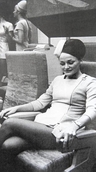 當時航空公司對空姐們的要求極其嚴格。所有空姐都必須塗口紅,並時刻攜帶一雙備用絲襪。她們必須接受檢查,確保腿部皮膚光潔、髮型整齊。在稱重時,如果體重超過航空公司規定的1公斤就可能被解雇。領薪水時也必須穿好高跟鞋和裙子。航空公司把空姐們的美貌當作一種行銷工具,並給予她們明星一樣的地位。所以,即使薪水不高、航班計畫不合理而且飛行的目的地也沒有特別風景可看,也有很多女孩夢想成為空姐。漢森說,當時1000個人競爭一個職位。面試過程就像選美比賽。