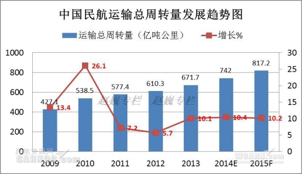 2015年預計全球1%的GDP將用在航空運輸,總計超過8200億美元。航空旅行正在加速增長,創2010年以來最好的記錄,預計2015年增速高達7%,遠高於過去的20年裏5.5%的平均水準。