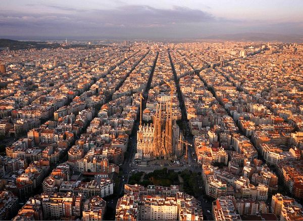 空中俯瞰巴賽隆納城市街景