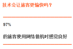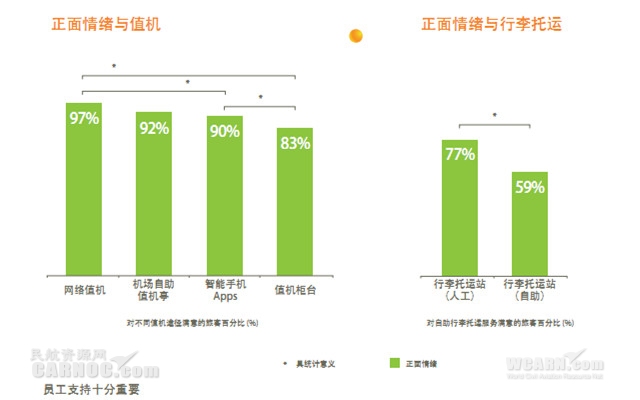 舉例而言,在選擇網路值機的旅客中,有97%感覺良好,而只有83%在機場櫃檯值機的旅客感覺良好。