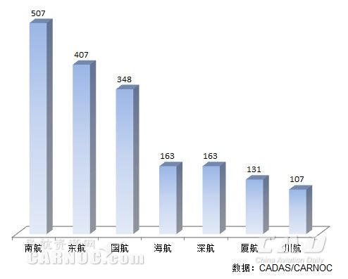 根據CADSA數據,在中國,南航的飛機數量最多,為507架,全球第5,同時也是亞太地區規模最大的航空公司。東航擁有407架飛機。國航擁有348架飛機。機隊規模突破100架的航空公司還有深航163架、海航163架、廈航131架以及川航107架。