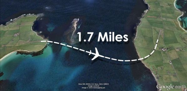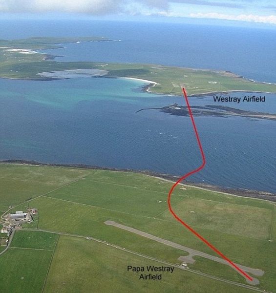 韋斯特雷(WRY) 和帕帕韋斯特雷機場(PPW)之間的距離只有1.7英裏(2.8公裏)。其實站在任意一個機場都能看到對面機場。