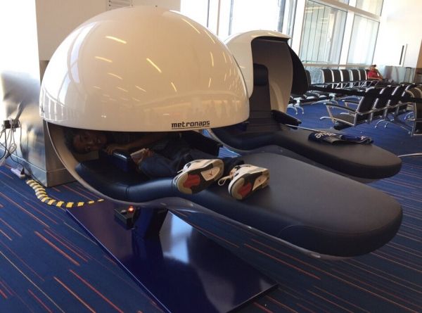 這款由“MetroNaps”公司設計的座椅可以讓旅客把椅背調低躺下休息。座椅本身有震動按摩功能,旅客們可以享受舒緩的音樂,頭部還有保護罩能夠隔絕光線和噪音。