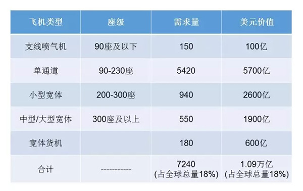 未來20年,全球新飛機需求中的近20%將來自於中國的航空公司。