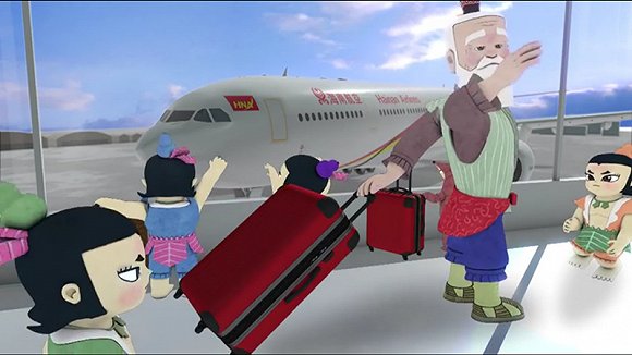 海南航空玩的是“葫蘆娃”。故事一開始是七個葫蘆娃娃和爺爺要出遠門,在飛機上爺爺給葫蘆娃們普及安全知識。全片基本路線還是《葫蘆兄弟》的設定,打怪升級順帶小科普。