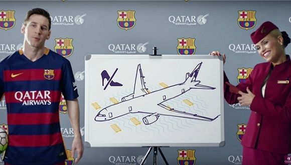 卡達航空請來了巴薩球星,拍攝了一支4分鐘的航空安全視頻,巴賽隆納足球俱樂部參加西甲聯賽的六名球星——梅西、蘇亞雷斯、內瑪律、皮克、拉基蒂奇和馬斯切拉諾,呆萌出鏡,從足球的視角與空乘人員一起重新詮釋了飛行安全。