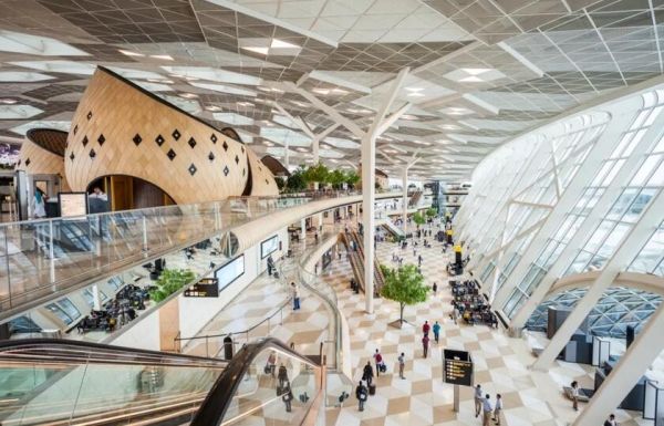 設計師“森林中的機場”設計展示了不銹鋼製作的殼型屋頂這樣的現代設計如何與文化傳統相融合。機場還設有一系列祈禱室。