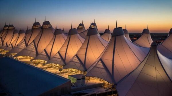 美國機場的建築設計常常差強人意,而丹佛國際機場用織物覆蓋的帳篷狀頂篷設計卻成為一大亮點。