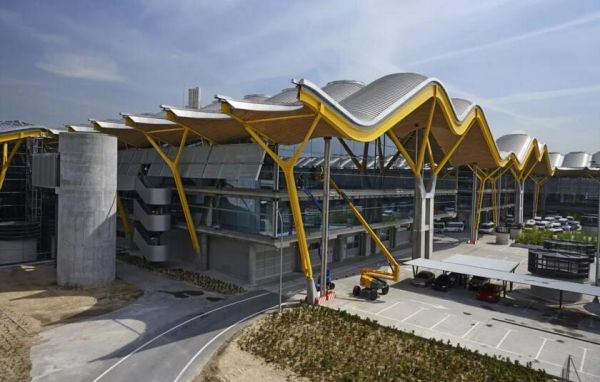 獨特的波浪型屋頂,由中央支柱支撐,白天可吸收自然光線。與大多數機場配色中使用的標準灰色和白色相區別,明亮的紅色和黃色傳達出了熱情好客的氛圍。並且對於馬德里的炎熱的夏天來說,屋頂也提供了必要的遮陽功能。