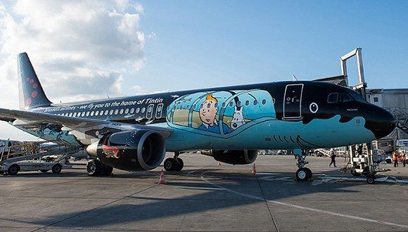卡通人物一直是飛機彩繪的熱門主題,布魯塞爾航空的這架“丁丁歷險記”主題飛機就是為了紀念這位比利時著名的漫畫人物。飛機的外形是一艘鯊魚潛艇,取自《丁丁歷險記·紅色拉克姆的寶藏》,上面還有丁丁和狗狗白雪的彩繪形象。乘客還能在飛機上閱讀英語、法語、荷蘭語三個版本的《丁丁歷險記》。