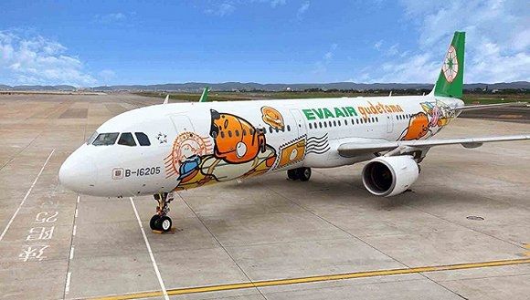 另一個出現在飛機裝飾上的卡通人物是三麗鷗公司的懶蛋蛋,它被用在長榮航空從臺北飛往東京的航線上。懶蛋蛋是一隻懶惰、孤僻的雞蛋形象,經常被發現躲在培根底下。如果把它作為飛機外部裝飾還不夠新奇,那麼機艙內到處都是的懶蛋蛋主題杯子、棋牌、枕頭一定會讓你印象深刻。