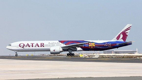 卡達航空從2013年以來一直受到巴薩的贊助,2014年在旗下的一架波音777飛機上進行了巴薩主題的裝飾,印上了巴薩的隊旗和隊徽,還寫著標語“一個團結了全世界的球隊”。飛機採用了巴薩隊旗上的漸變圖案進行彩繪,起飛的時候仿佛圖案在流動,而巴薩標誌性的紅藍色則覆蓋了一半的機身。