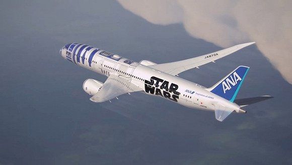 R2-D2可能是全世界最火爆的機器人,2015年它出現在了全日本航空公司旗下的一架夢幻飛機上。除了R2-D2,全日本航空公司還將推出C-3PO和BB-8主題的彩繪。這架R2-D2主題的飛機同時也是為了配合《星球大戰7:原力覺醒》的全球首映進行電影宣傳。