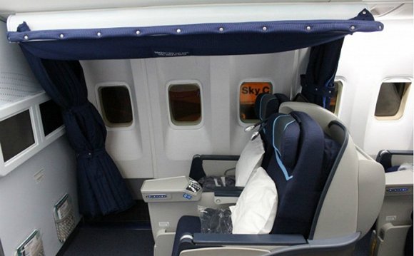 大部分飛機上的機長休息區都設置在一等艙上方和駕駛艙後背。圖中這架波音777便是如此。