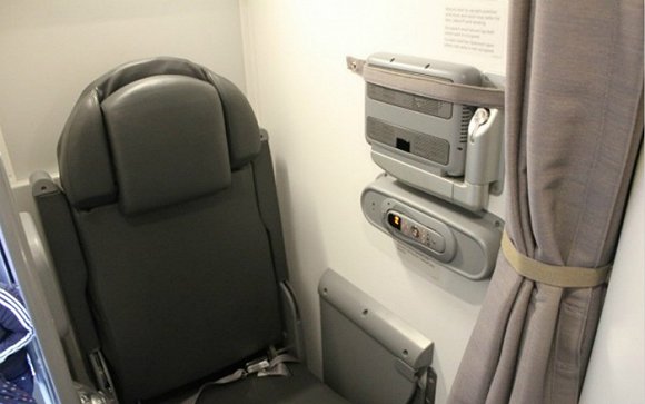 這架紐西蘭航空777上的休息區屬於標準佈局,兩個自動調節座椅,後方是床位。