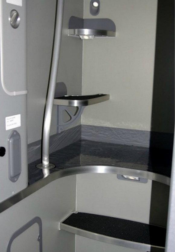 部分飛行員休息艙配備有洗手間或浴室,和下圖漢莎航空空客A380的結構一樣。這裡的設計基本和經濟艙洗手間相同,只不過可能乾淨得多,也不需要長時間的等候。